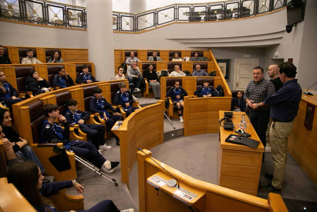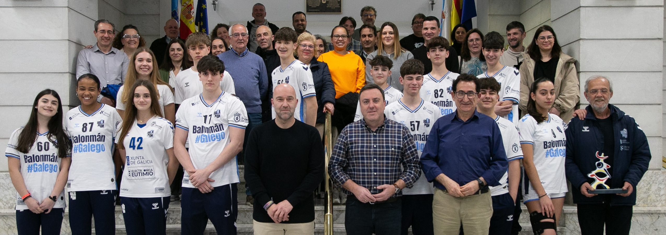 A Coruña, 3 de marzo de 2026.– O Presidente da Deputación da Coruña, Valentín González, e o deputado de Deportes, Antonio Leira, recibiron hoxe ás 18:30 horas, na sede da institución provincial, aos 13 deportistas da provincia que participaron no Campionato de España de Seleccións Autonómicas (CESA) 2026 formando parte das seleccións galegas de balonmán.