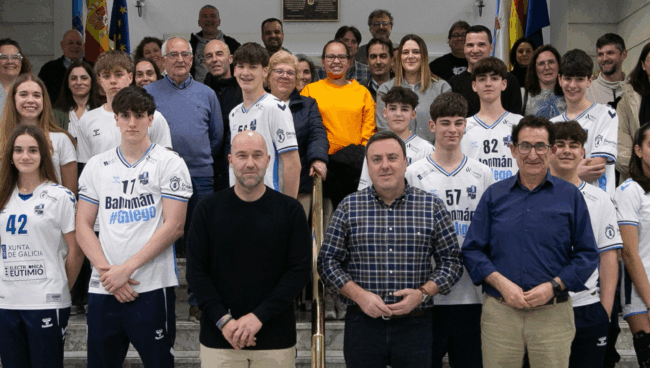 A Coruña, 3 de marzo de 2026.– O Presidente da Deputación da Coruña, Valentín González, e o deputado de Deportes, Antonio Leira, recibiron hoxe ás 18:30 horas, na sede da institución provincial, aos 13 deportistas da provincia que participaron no Campionato de España de Seleccións Autonómicas (CESA) 2026 formando parte das seleccións galegas de balonmán.